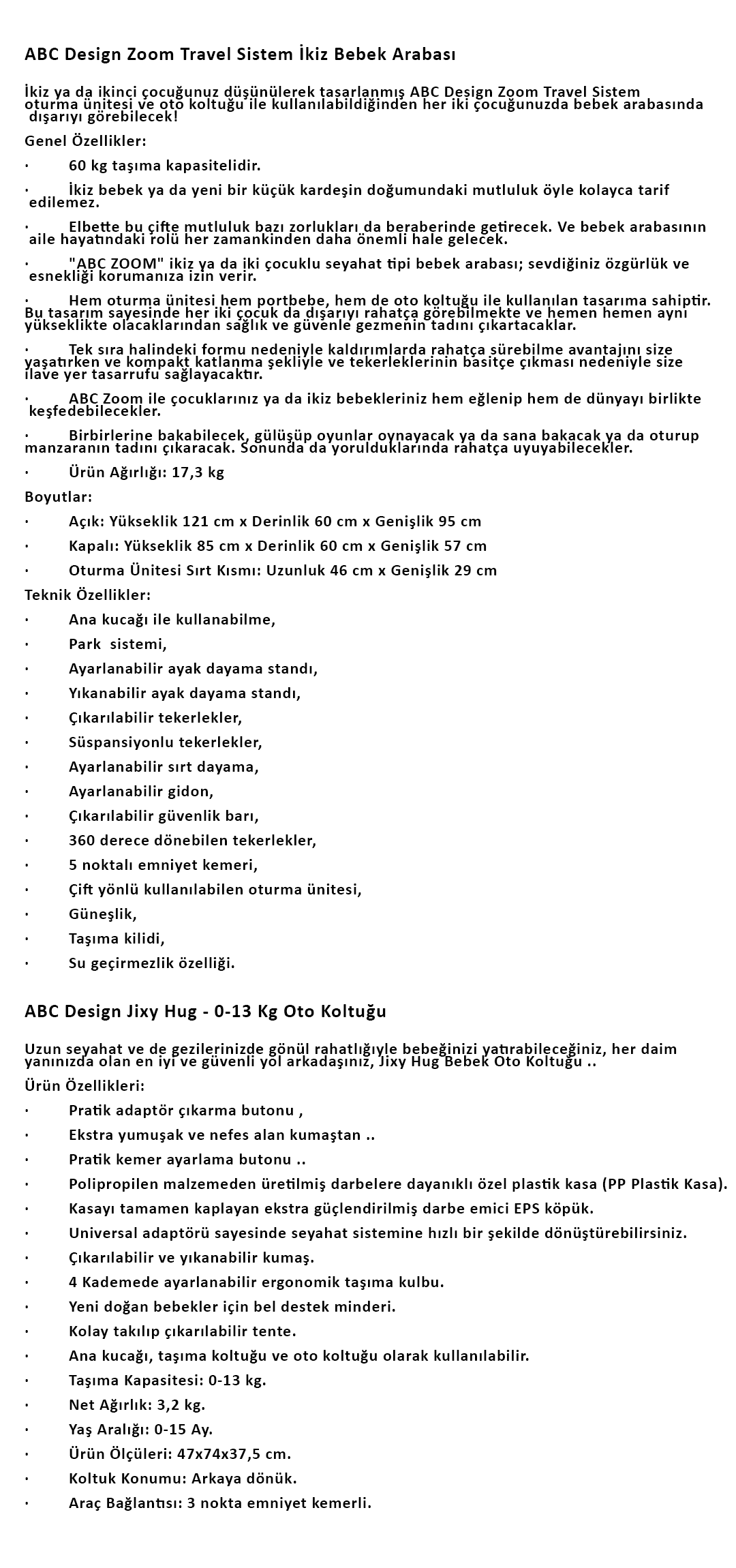 ABC Design Zoom Tin İkiz Bebek Arabası Jixy Black Set