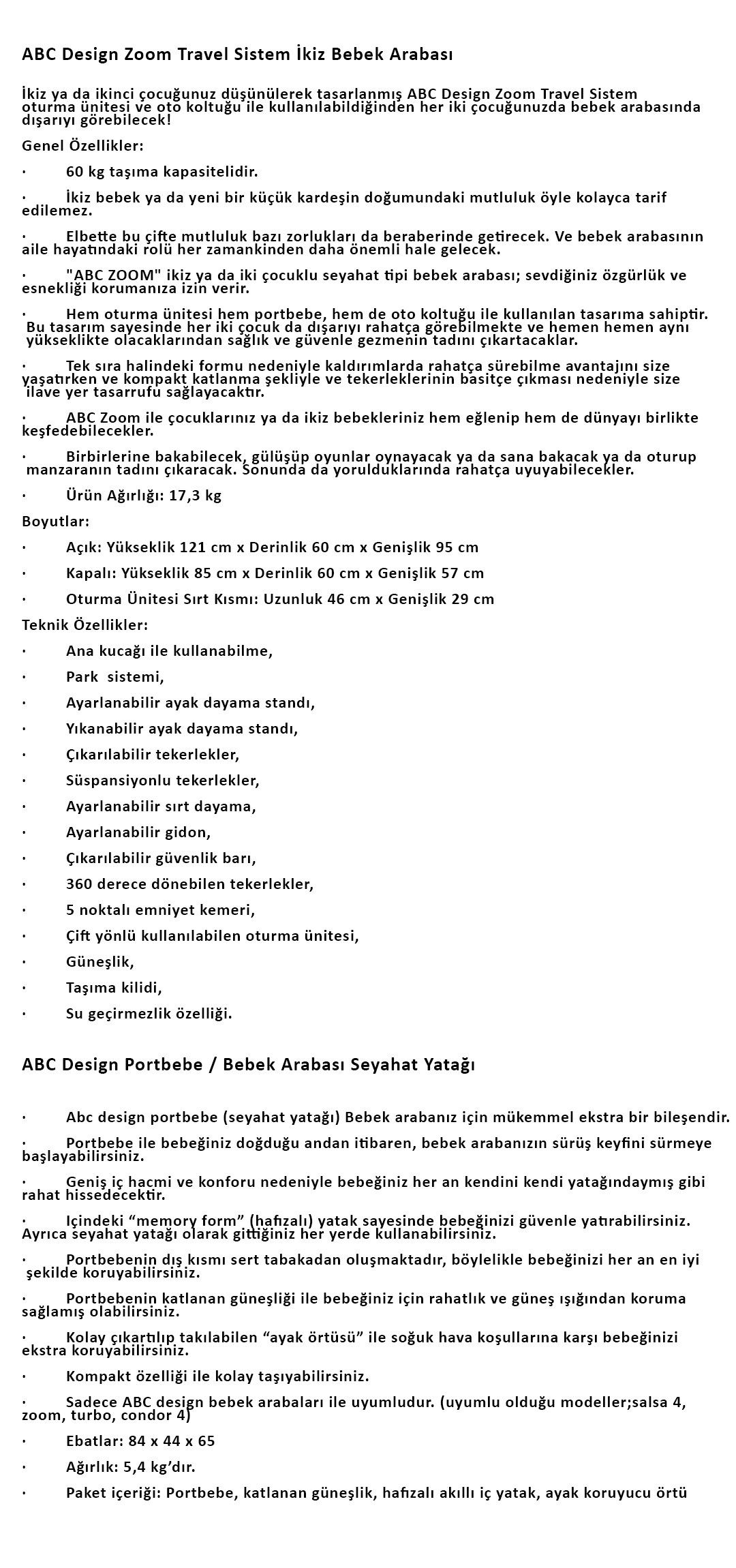 ABC Design Zoom Tin İkiz Bebek Arabası Ice Portbebe Set